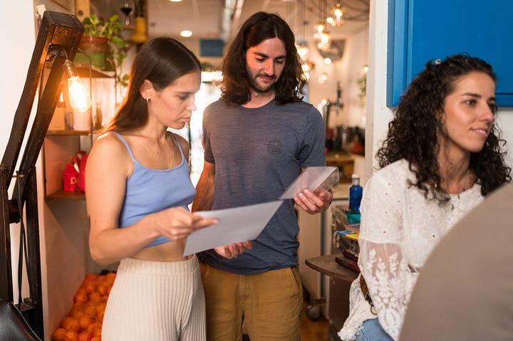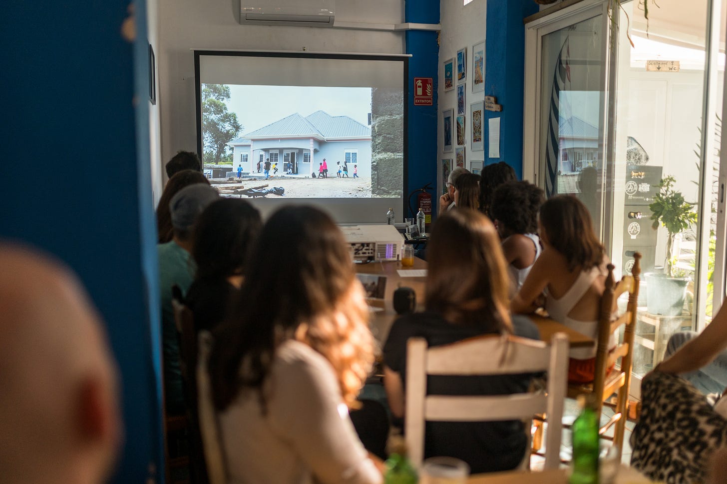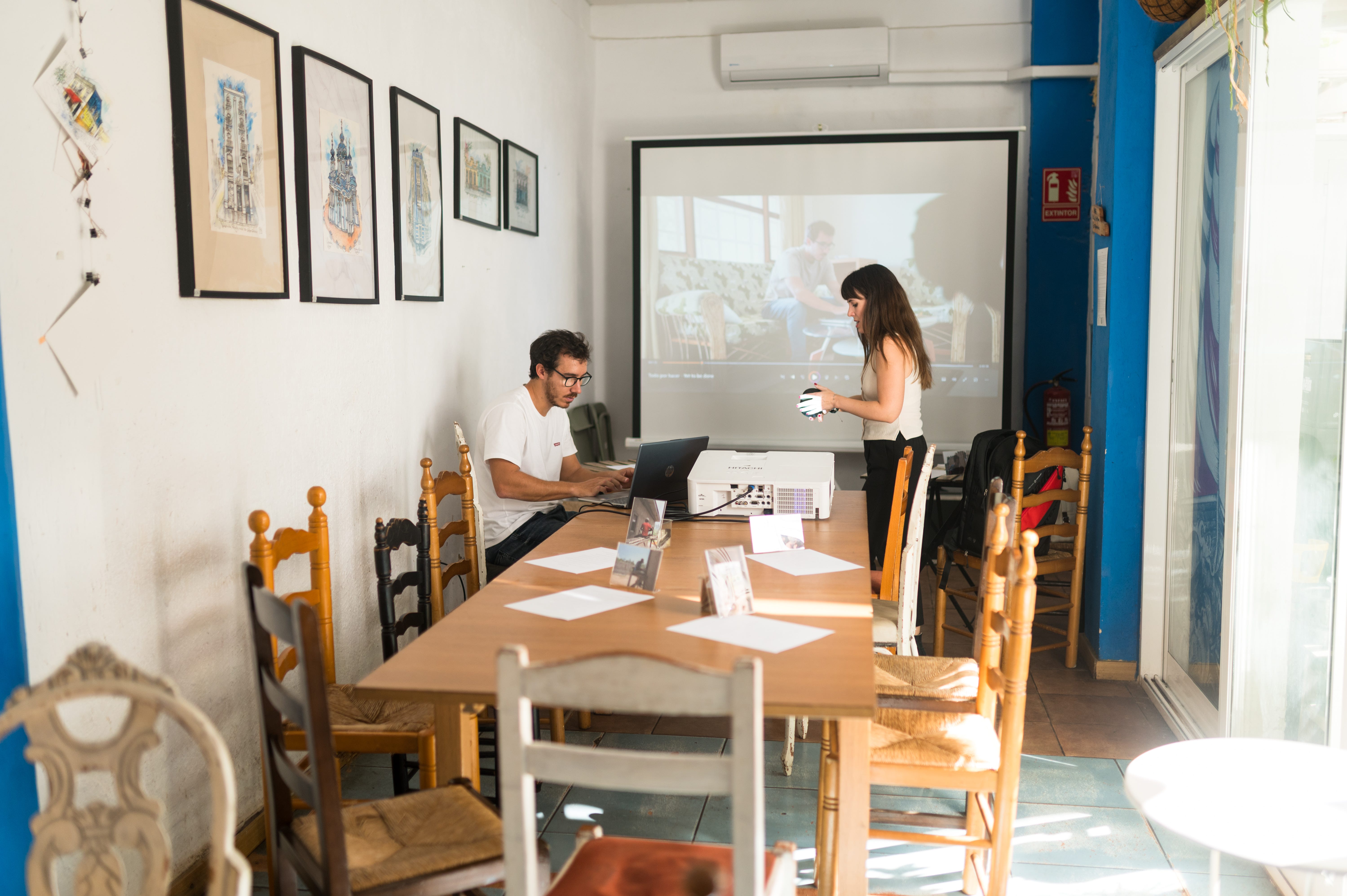 Me desperté el viernes con nervios, al igual que los días previos al viaje. A continuación, un desayuno rápido y trayecto en coche hasta el aeropuerto de Sevilla. El modo aventura activado una vez más, como cada vez que me subo a un avión con una mochila a la espalda. Llegada a Valencia, taxi hasta la tienda para recoger el proyector que alquilamos y otro trayecto más hasta la cafetería Artysana, que se convertiría en mi casa durante los próximos días. Una vez allí, pruebas de imagen y sonido con clientes y mesas alrededor.