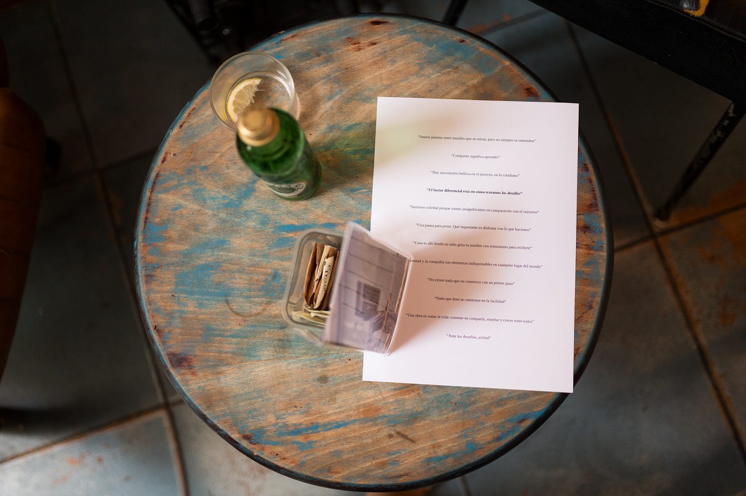 En la cafetería hemos dispuesto varias mesas para que los asistentes formen grupos, y en todas ellas hay colocadas una selección de fotografías sobre mi vida y mi trabajo en Uganda junto a unas frases que pretenden inspirar ideas y reflexiones. Luego sonará una playlist con música africana, que confeccioné para la ocasión. Quiero sentirme en Uganda de nuevo y, sobre todo, trasladarlos a todos hasta allí.